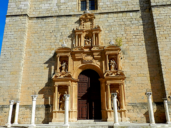 Al inicio del s.XVIII, el templo remató su muro oeste con una sobria portada, barroco-clasicista, obra de Fray Pedro Martínez. Ese retablo de piedra, que es la fachada de poniente, está presidido por una escultura de la santa titular,